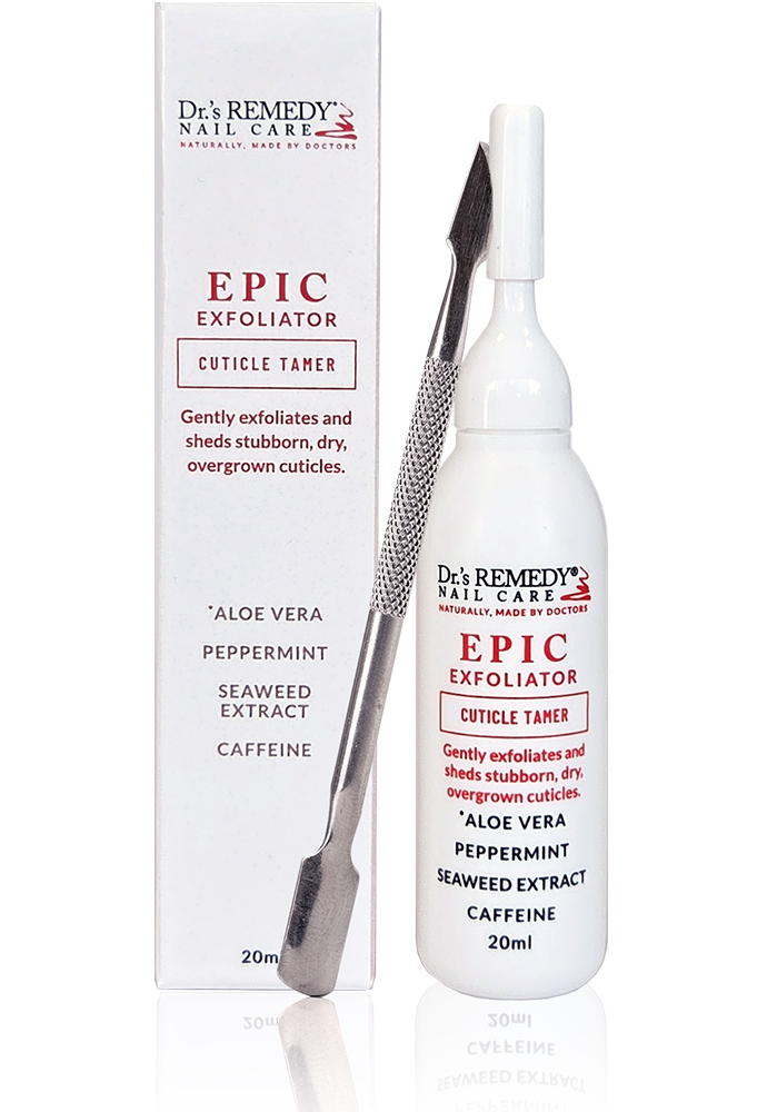 Formulated with triple-action plant power, EPIC is your natural, non-invasive way to maintain a tidy, healthy-looking nail bed. It works by softening, lifting, and exfoliating dead skin and overgrown cuticle buildup so you can push backand hydrate—no cutting required.