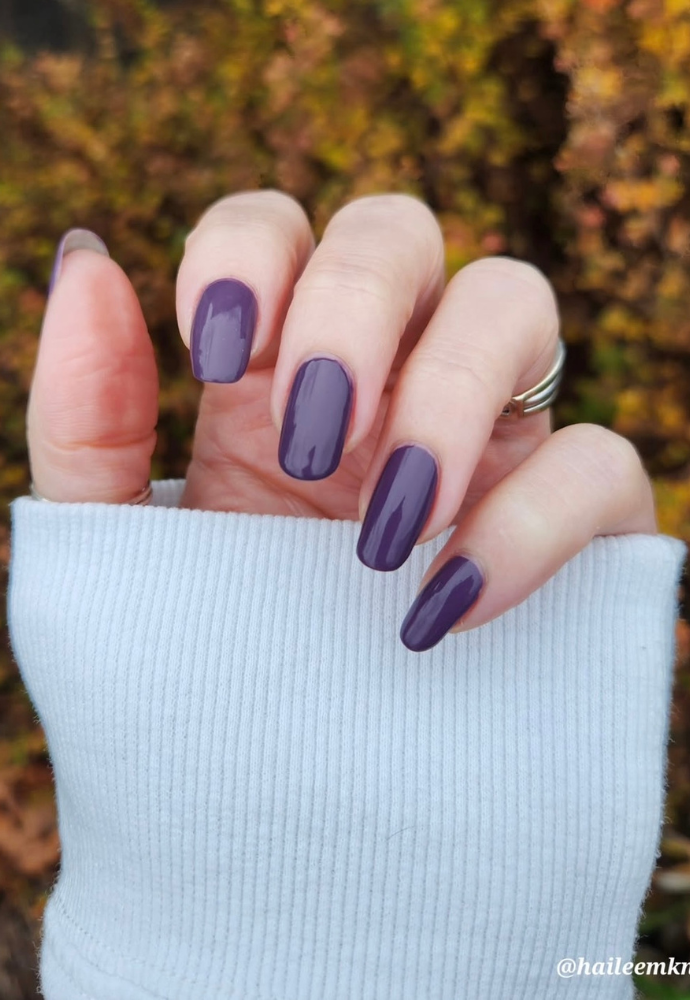 Apply 1–2 coats of PLUCKY Plum Crème Polish